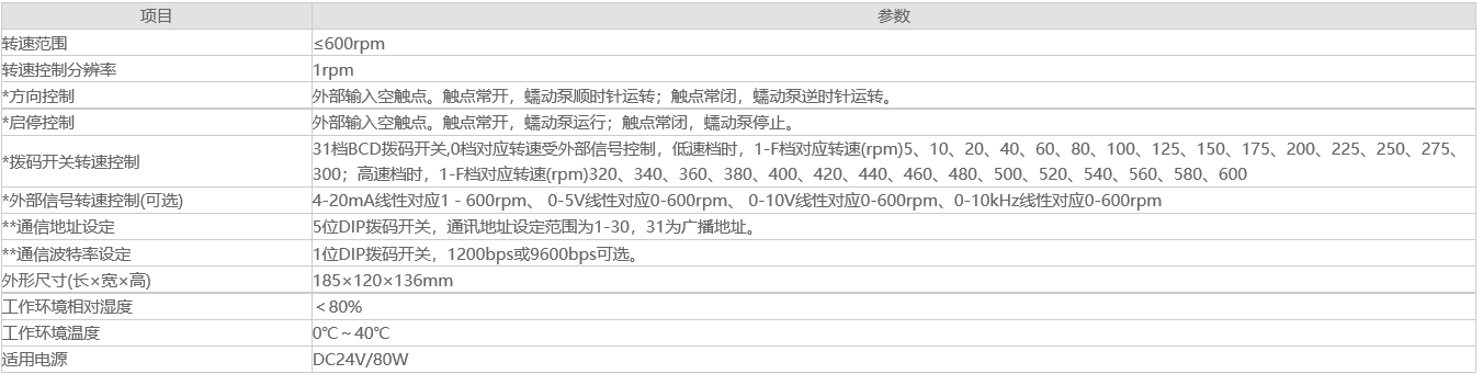 說明:*項目為撥碼開關(guān)結(jié)合外部信號控制方式所特有