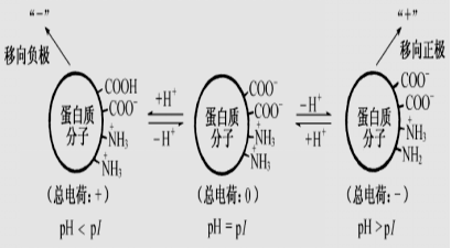 溶液的PH決定帶電顆粒的解離程度,也即決定其帶靜電荷的量。對蛋白質而言,溶液pH值離等電點越遠,則顆粒所帶的凈電荷越多,泳動速度也越快;反之,則越慢。因此分離某種蛋白質混合液時,應選擇合適的pH,使欲分離的各種蛋白質所帶的電荷數(shù)量有較大的差異