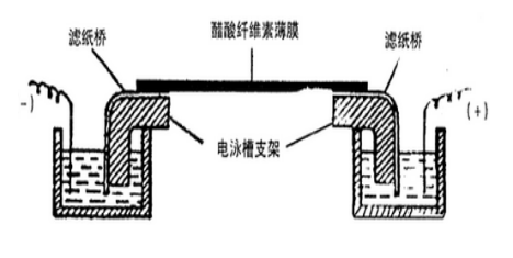 以醋酸纖維制成的薄膜作為支撐體的電泳稱為薄膜電泳。 醋酸纖維是纖維素的醋酸酯,由纖維素的羥基經(jīng)乙酰化而成。 將之溶于丙酮等有機溶劑中,即可涂布成均一細(xì)密的微孔薄膜, 厚度約以0.1-0.15mm為宜。 醋酸纖維素薄膜與濾紙相比較,有以下優(yōu)點: