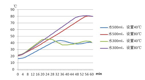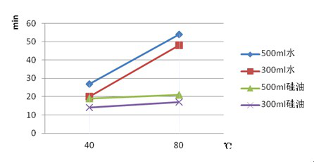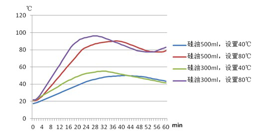 針對(duì)大龍儀器的此類(lèi)產(chǎn)品,我們分別利用水和硅油作為被加熱介質(zhì),在同一溫度條件下,進(jìn)行加熱實(shí)驗(yàn),所得實(shí)驗(yàn)結(jié)果如圖2-4所示。